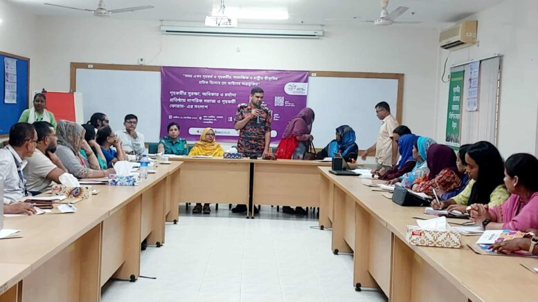 আজ বৃহস্পতিবার (১৮ সেপ্টেম্বর) রাজধানীর লালমাটিয়ায় এনজিও ফোরাম কনফারেন্স হলে ‘সময় এখন, গৃহকর্ম ও গৃহকর্মীর সামাজিক ও রাষ্ট্রীয় স্বীকৃতির। শ্রমিক হিসেবে গ্রাম আইনে অন্তর্ভুক্তির’ শীর্ষক সংলাপ এসব কথা বলেন তারা। মোহাম্মদপুর গৃহকর্মী আঞ্চলিক ফোরামের সভাপতি হুমায়ারা বেগমের সভাপতিত্বে ও ডিএসকের প্রকল্প কর্মকর্তা শংকর চন্দ্র অধিকারীর সঞ্চালনায় সংলাপে বক্তৃতা করেন সমাজ সেবা অফিসার মো. সাইফুল ইসলাম ও রাসেল আহমেদ সজীব, ফায়ার সার্ভিস কর্মকর্তা ফসিহ উদ্দিন, যুব উন্নয়ন কর্মকর্তা নাসরিন আহমেদ, মহিলা বিষয়ক কর্মকর্তা লুৎফুন নাহার, শ্রমিক-কর্মচারী ঐক্য পরিষদ-স্কপের আহসান হাবিব বুলবুল, আইন ও সালিশ কেন্দ্রের শিল্পী সাহা, ট্রেড ইউনিয়ন কেন্দ্রের শাহিদা পারভীন শিখা, মোহাম্মদপুর থানার এসআই মমতাজ বেগম প্রমূখ।